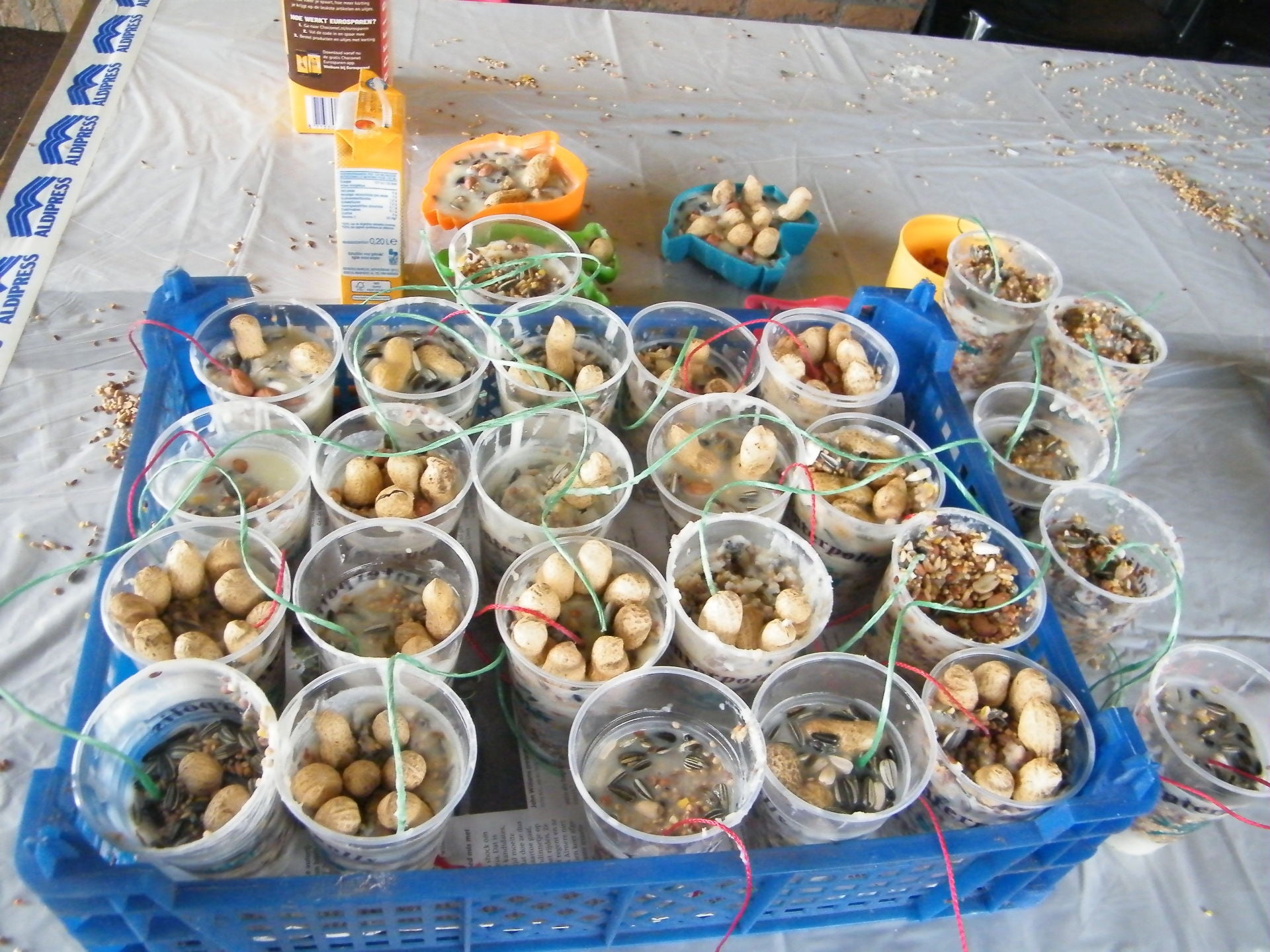 Woensdagmiddag 29 november 2017 is er hard gewerkt en geknoeid met vogelzaad, vet, pindakaas en dennenappels.